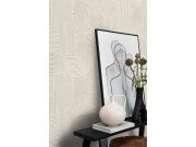 Geometrické vliesové tapety na zeď, vzor tvořený jemně plastickými liniemi, odstíny šedo-béžové a stříbrné.