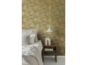 Zlato-béžové vliesové tapety na zeď, geometrický vzor v retro stylu.