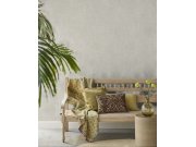 Luxusní pololesklá krémové / ecru vliesové tapety s vinylovém povrchem, plastické motivy palmovéch listů, odstíny hnědo-zlaté a šedé. Foto interiéru je pouze ilustrační - odlišné barvy.