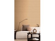 Luxusní vliesové tapety s vinylovém povrchem, odstíny pololesklé hnědo-béžové, nepravidelné stínované proužky a textury evokují splývavou látku. Co vás zaujme: kvalita zpracovéní, vysoká odolnost. Design: luxusní. Úroveň tapetovéní: pro začátečníky. Země