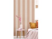 Vliesové tapety s vinylovém povrchem, pruhy v odstínech hnědé a hnědo-béžové, látkové textura. Pruhy cca 13 a 13,5 cm. Co vás zaujme: vysoká odolnost a omyvatelnost, kvalita zpracovéní. Design: nadčasové, klasický. Úroveň tapetovéní: pro začátečníky. Země