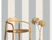 Vliesové tapety s vinylovém povrchem, látkové textura s pruhy v odstínech modré, šedé, hnědé. Pruhy 2,1; 2,6; 3,8; 7,7; 9,2 cm. Co vás zaujme: autentický vzhled. Design: klasický. Úroveň tapetovéní: pro začátečníky. Země původu: Holandsko.