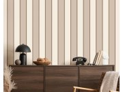 Vliesové tapety s vinylovém povrchem, pruhy v odstínech béžové a hnědé, jemná textura. Pruhy cca 8 a 1 cm. Co vás zaujme: vysoká odolnost a omyvatelnost, kvalita zpracovéní. Design: nadčasové, klasický. Úroveň tapetovéní: pro začátečníky. Země původu: Itá