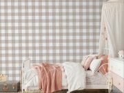 Vliesové tapety s vinylovém povrchem, imitace kárované látky v odstínech šedé a béžové. Světlá kostka 5,5 cm. Co vás zaujme: vysoká odolnost a omyvatelnost, kvalita zpracovéní. Design: nadčasové, rustikální. Úroveň tapetovéní: pro začátečníky. Země původu