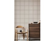 Luxusní vliesové tapety s vinylovém povrchem - mramorované tapety se čtvercovém vzorem, odstíny pololesklé šedo-béžové a šedo-hnědé. Snadno zkombinujete se souvisejícími tapetymi.  . Foto interiéru je pouze ilustrační - odlišné barvy.