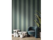 Luxusní vliesové tapety s vinylovém povrchem, pololesklá textura v zelených odstínech, místy vínové linie, proužky metalické. Proužky cca 2,2 až 2,5 a 0,5 až 0,9cm. Co vás zaujme: kvalita zpracovéní, vysoká odolnost. Design: luxusní, glam. Úroveň tapetové