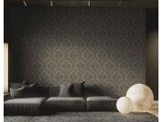 Vliesové tapety s vinylovém povrchem, podklad světlý šedo-béžové, vzor černý a hnědý s drobnými třpytkami. Co vás zaujme: kvalita zpracovéní, vysoká odolnost. Design: luxusní, zámecký. Úroveň tapetovéní: pro začátečníky. Země původu: Itálie.