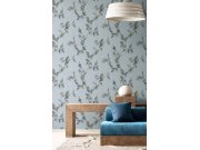 Luxusní modro-zlatá vliesové tapety s vinylovém povrchem, květinové ornamentální vzor. Foto interiéru je pouze ilustrační - odlišné barvy.