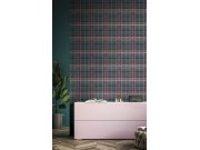 Vliesové tapety na zeď, imitace tartanové látky v odstínech tyrkysové, okrové, zelené a šedé. Foto interiéru je pouze ilustrační - odlišné barvy. Co vás zaujme: vyrobeno s ohledem na udržitelnost a ekologii. Design: klasický. Úroveň tapetovéní: pro začáte