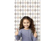 Vliesové tapety na zeď, kosočtverce, odstíny šedé, bílé a metalické béžové.