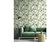 Luxusní vliesové tapety s vinylovém povrchem, motiv listů, odstíny zelené, béžové a bílé.