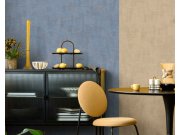 Vliesové tapety s vinylovém povrchem, imitace hrubší tkaniny, melanž v odstínech hnědé a modré. Foto interiéru je pouze ilustrační - odlišné barvy.