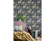 Luxusní vliesové tapety s vinylovém povrchem, motiv kosatců v odstínech lila, okrové a zelené, tmavě modrý podklad, jemná látkové textura. Co u vás zaujme: kvalita, stylové vzhled. Design: přírodní. Úroveň tapetovéní: pro začátečníky. Země původu: Itálie.