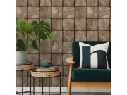 Hnědá vliesové tapety s vinylovém povrchem, jemná textura, design dřevěných obkladů s palmovémi listy. Co u vás zaujme: autentický vzhled, snadná údržba. Design: přírodní, nadčasové, etno. Úroveň tapetovéní: pro začátečníky. Země původu: Francie. obklady