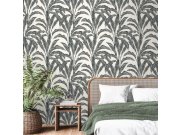 Luxusní vliesové tapety s vinylovém povrchem, motiv listů, odstíny šedé, hnědé, černé a stříbrné. Foto interiéru je pouze ilustrační - odlišné barvy.