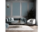 Luxusní vliesové tapety s vinylovém povrchem - plastické látkové textura, odstíny pololesklé modré a šedo-stříbrné. Foto interiéru je pouze ilustrační - odlišné barvy.