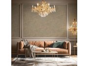 Luxusní vliesové tapety v šedo-hnědé barvě s plastickým zlatým geometrickým vzorem na podkladě imitující štukovou omítku. Foto interiéru je pouze ilustrační - odlišné barvy.