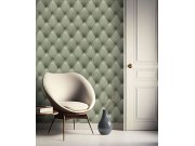 Pololesklá zelená vliesové tapety s vinylovém povrchem, 3D vzor imitace polstrovéní. Co u vás zaujme: autentický vzhled, vysoká odolnost a omyvatelnost. Design: klasický, eklektický. Úroveň tapetovéní: pro začátečníky. Země původu: Francie.