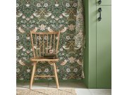 Vliesové tapety na zeď, bohatý ornamentální vzor s květinami, listy, ptáčky a jahodami, odstíny zelené, růžové a okrové. Co u vás zaujme: kolekce vytvořená ikonou světového designu. Design: nadčasové, přírodní. Úroveň tapetovéní: pro začátečníky. Země pův