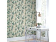 Vliesové tapety na zeď, zelený podklad, bohatý květinové vzor v odstínech zelené, šedé, modré, růžové a žluté. Co vás zaujme: vyrobeno s ohledem na udržitelnost a ekologii. Design: klasický, přírodní. Úroveň tapetovéní: pro začátečníky. Země původu: Švéds