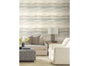 Šedo-zeleno-okrové vliesové tapety na zeď, vzor evokuje ruční malbu krajiny v mlze.