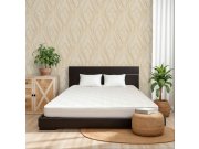 Luxusní vliesové tapety s vinylovém povrchem - zlatý geometrický vzor se zlatými třpytkami na pololesklém mramorovaném podkladu v odstínech šedo-béžové a béžové. Snadno zkombinujete se souvisejícími tapetymi. Foto interiéru je pouze ilustrační - odlišné b