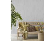 Plastické vliesové tapety s vinylovém povrchem, šedý podklad, šedo-béžové vzor, šedo-stříbrné obrysy. Foto interiéru je pouze ilustrační - odlišné barvy.