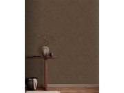 Jemně plastické vliesové tapety na zeď, vzhled tkaniny, odstíny tmavé hnědo-šedé a černé, ve vzoru s metalickými akcenty. Foto interiéru je pouze ilustrační - odlišné barvy. Co vás zaujme: vyrobeno s ohledem na udržitelnost a ekologii. Design: rustikální,