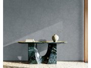 Pracuje s materiály, které znáte – kámen, mramor, omítky, kov – ale skládá je dohromady tak, že působí úplně nově. Povrchy se prolínají, světlo si s nimi hraje a stěna díky tomu nikdy nevypadá úplně stejně. A přesně v tom je její kouzlo.
