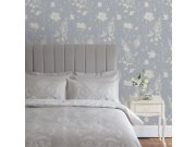 Vliesové tapety na zeď, modrý podklad, motiv rozkvetlé Vistárie v odstínech šedo-béžové a bílé. Co vás zaujme: vyrobeno s ohledem na udržitelnost a ekologii. Design: přírodní. Úroveň tapetovéní: pro začátečníky. Země původu: Švédsko.