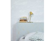 Světle modrá malba oblohy se zlatými ptáčky na bílém podkladu - vliesové tapety.