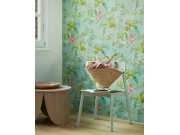Hladká tyrkysové vliesové tapety s růžovémi květy a ptáčky. Co vás zaujme: vyrobeno s ohledem na udržitelnost a ekologii. Design: romantický, přírodní. Úroveň tapetovéní: pro začátečníky. Země původu: Velká Británie.