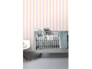 Vliesové tapety pruhy, odstíny růžové, béžové, žluté a bílé.