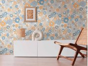 A.S. Création | Vliesová tapeta na zeď Retro Chic 39535-2 | tapeta na stěnu | 0,53 x 8,5 m | krémová, modrá, oranžová, vícebarevnáMateriál: Vlies