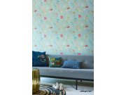 Hladká tyrkysové vliesové tapety s růžovémi květy a ptáčky. Co vás zaujme: vyrobeno s ohledem na udržitelnost a ekologii. Design: romantický, přírodní. Úroveň tapetovéní: pro začátečníky. Země původu: Velká Británie.