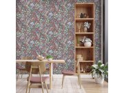 Hnědo-červená vliesové tapety s vinylovém povrchem, květinové vzor v odstínech zelené a modré.