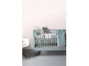Vliesové tapety na zeď, vzor růžové a bílé trojúhelníky.