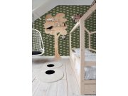 Tmavě zelená vliesové tapety na zeď, zvířecí vzory, motiv leopradů.