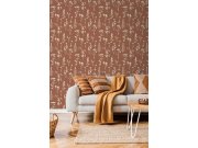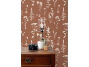 Terakotově hnědá vliesové tapety na zeď, bílé siluety lučních rostlin.