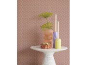 Terakotové vliesové tapety na zeď, geometrický vzorek v retro stylu - efektní střídání pololesku a matu.