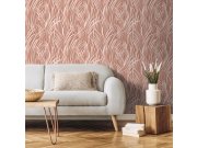 Vliesové tapety s vinylovém povrchem, motivy listů trávy v odstínech terakota a starorůžové.