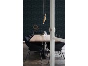 Vliesové, tmavě tyrkysové tapety s geometrickým vzorem, linie zlaté.