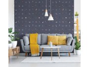 Tmavě modrá vliesové tapety na zeď, vzor bílé hvězdy.