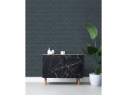 Tmavě tyrkysová geometrická tapeta 139230