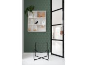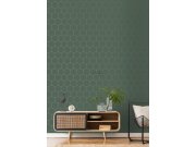Tmavě zelená vliesové tapety na zeď, metalické linie tvoří geometrické vzory.