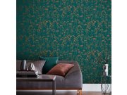 Tyrkysové vliesové tapety na zeď, motiv divoké přírody - stromy, listy, květiny.
