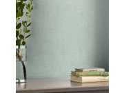 Tyrkysové vliesové tapety na zeď, textura evokuje látkovou strukturu, podklad s jemným metalickým žíháním.