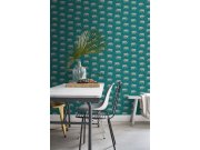 Tyrkysové vliesové tapety na zeď, motiv divoké přírody - stromy, listy, květiny.