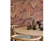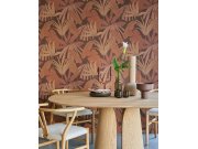 Hladká vínové vliesové tapety na zeď, tropické palmové listy v odstínech terakota a hnědé.