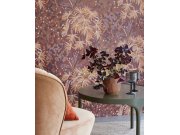 Vínové, jemně strukturovaná, vliesové tapety na zeď, větvičky a listy v odstínech fialové, lila a hnědé.